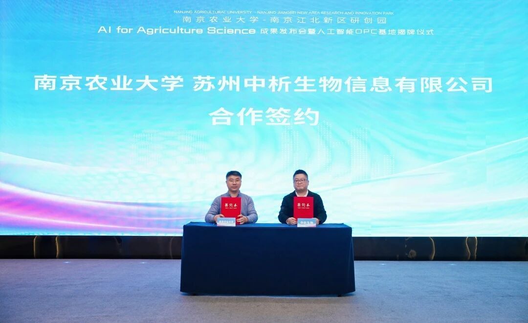 聚焦AI+未来农业系列成果转化应用,南京农业大学社会合作处处长许承保、苏州中析生物信息有限公司董事长朱斌分别代表校企双方共同签署合作协议,标志着该系列成果在产学研协同转化之路上迈出实质性步伐。而吸引中析生物达成联合研发、转让意向的成果,正是此次发布的“药问”农药科学家智能体。