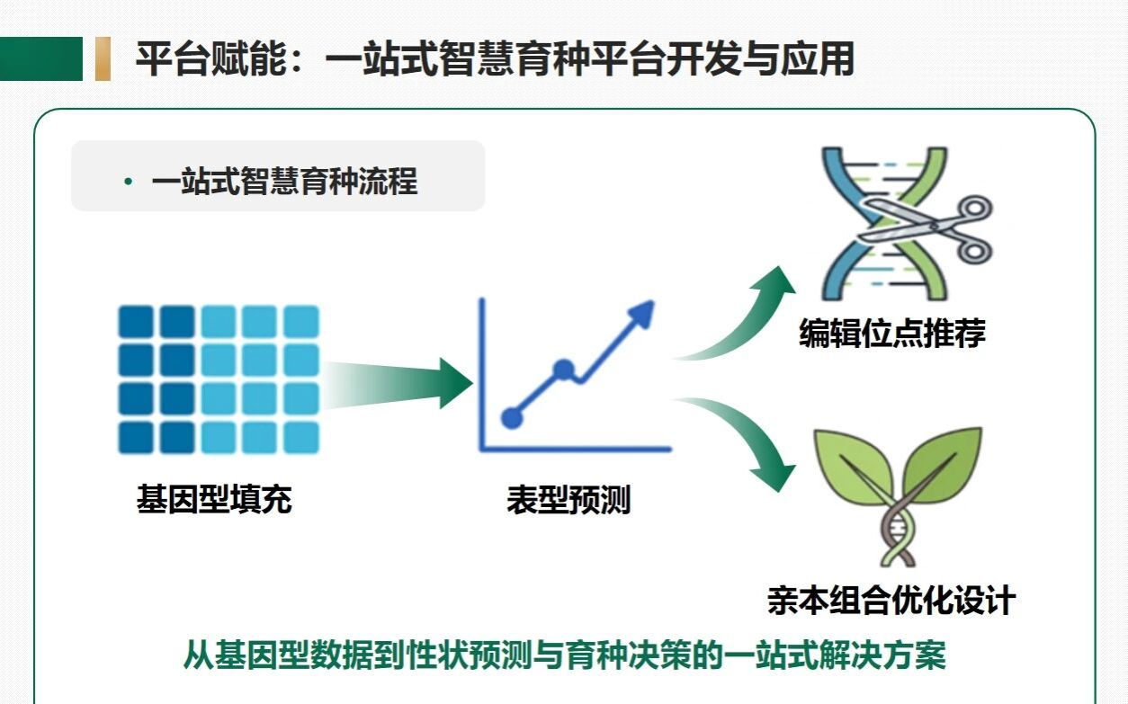 该模型首次实现了作物全生长周期的智能化模拟,整合海量基因信息、生长环境数据与动态表型组数据,打造了全新的“动态虚拟生命体”。通过构建“育种设计—田间验证—模型优化”闭环流程,预测不同环境下不同作物种质的生长和产量表现,智能识别关键基因,高效筛选优良种质,并智能生成育种优化方案。该模型破解了传统育种周期长、成本高、环境适应难控等关键瓶颈,将育种周期缩短至少50%。